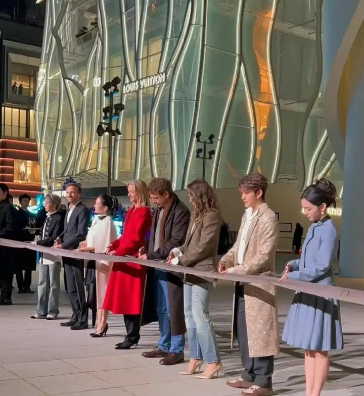但章子怡仅仅用一个利落的高马尾和那件随手披在肩上的白色西装,就赢得了最核心的位置。这场全球最大旗舰店的开业典礼,像是一面照妖镜,也像是一把度量衡。