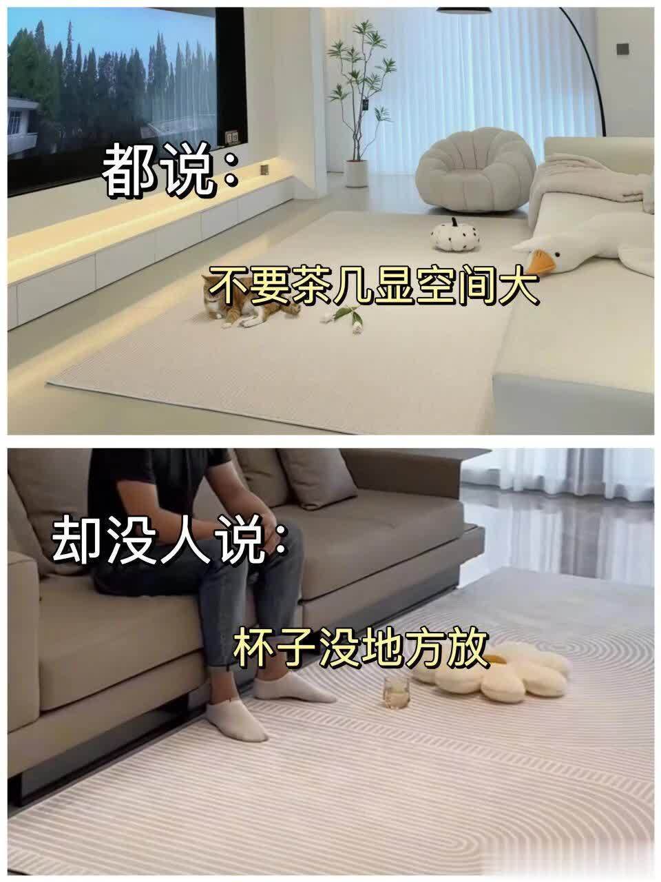 1. 网红宣称不要茶几可显空间大,却没人点明,日常使用的杯子、零食竟没了放置之地,实用性大幅降低